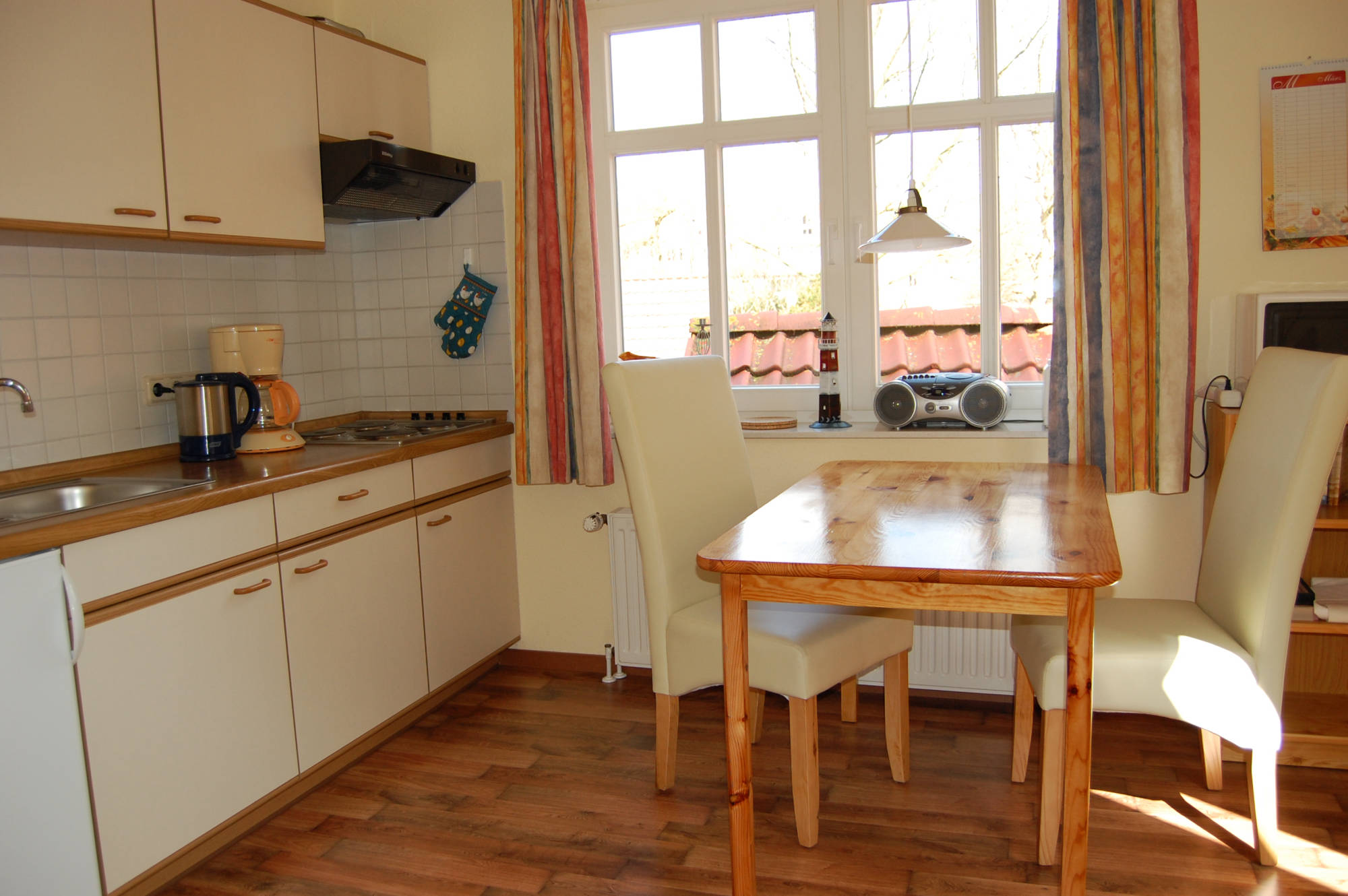 Ein Fahrradschuppen mit Bollerwagen und ein Strandkorb können genutzt werden.