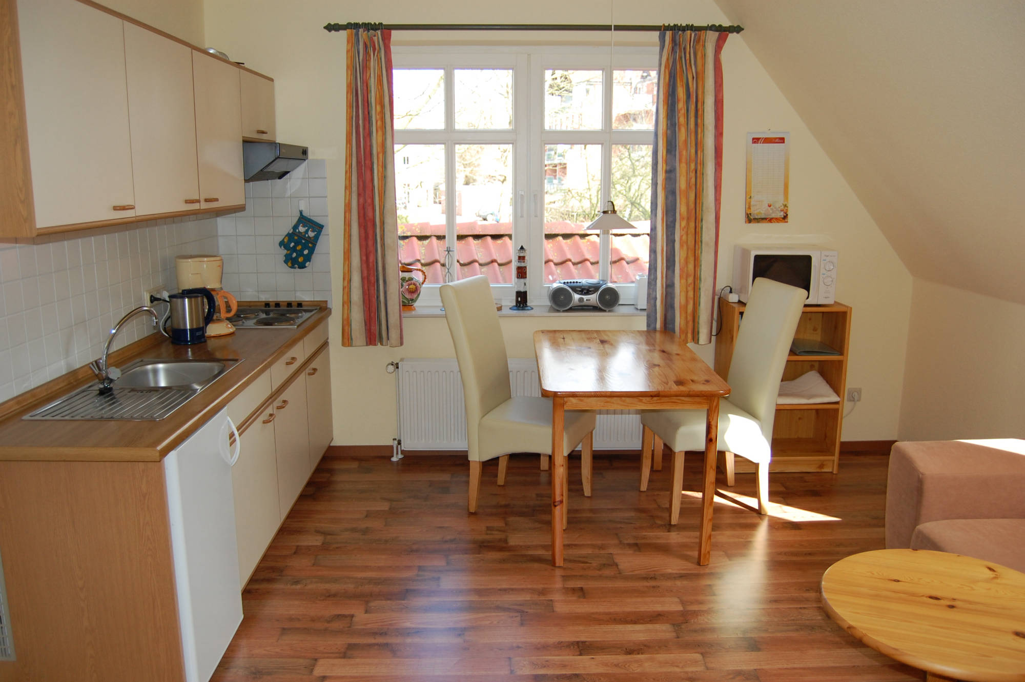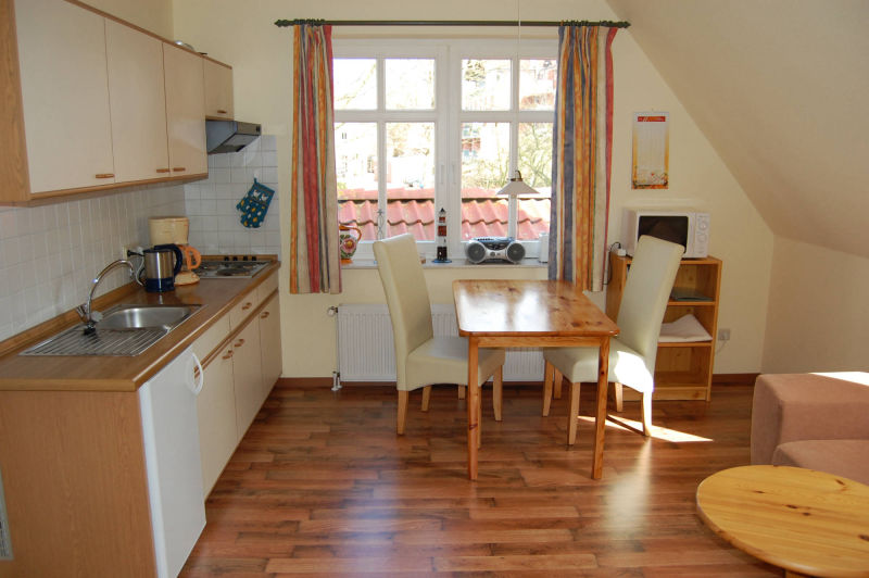 Die Wohnung Emma ist 36 m² groß, liegt im Obergeschoß. Sie verfügt über ein großes Wohnzimmer mit Essbereich und Küchenzeile, ein Schlafzimmer mit einem Doppelbett